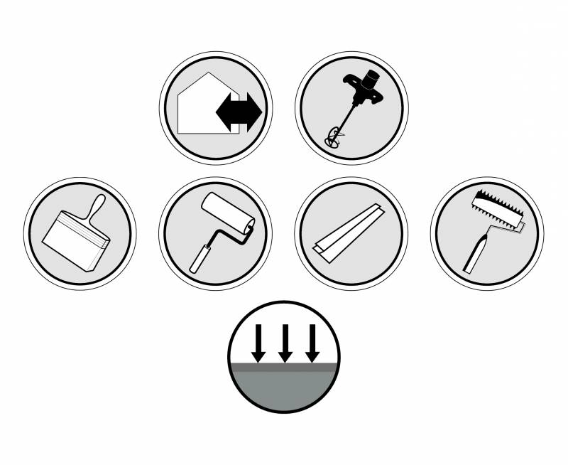 - Applications de Couches de l'AXSEL > à 0,750 kg / m2 et jusqu'à 3 mm en 1 passe, sous forme d’autolissant à la raclette crantée, avec passage d’un rouleau débulleur à picots 11 mm pointus - Nota : Veiller au parfait boucheporage du support dans ce cas.