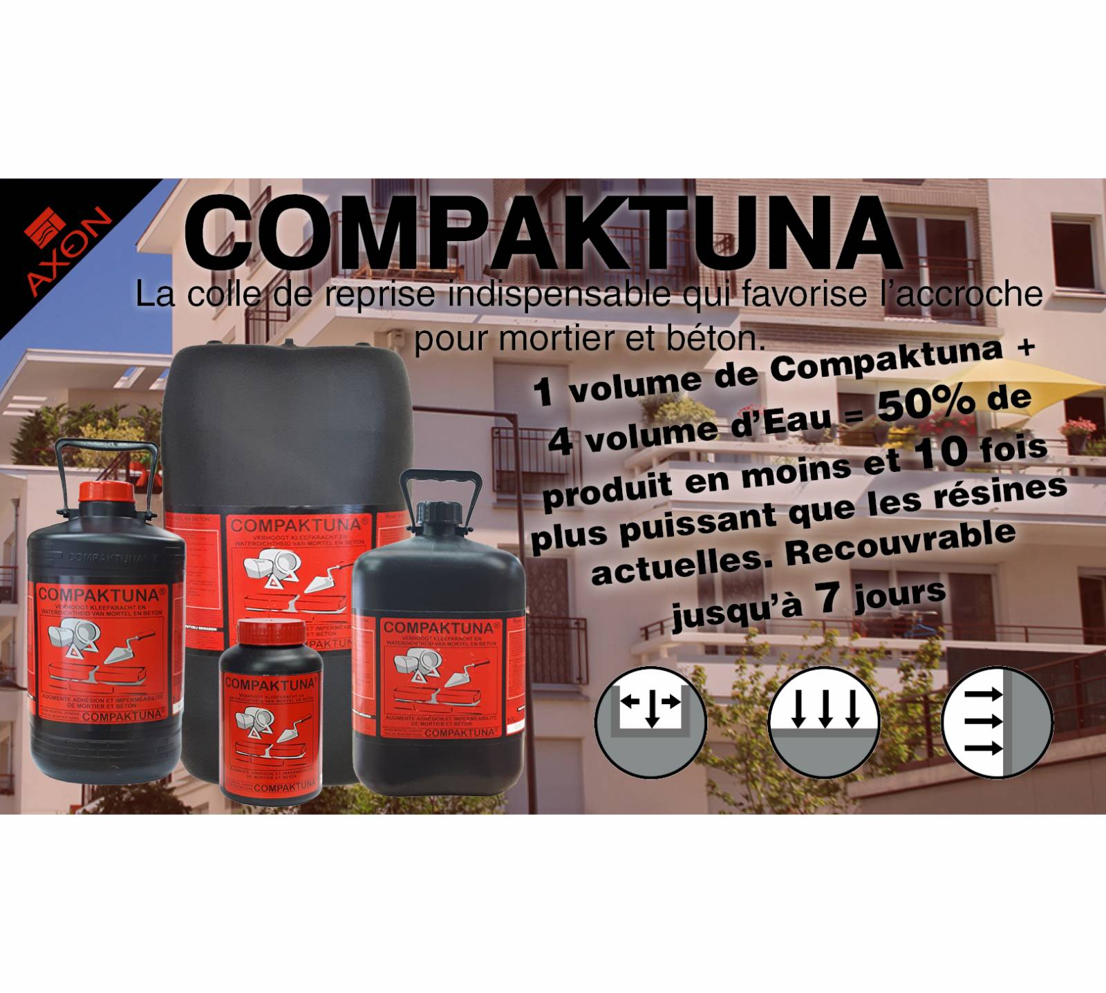 COMPAKTUNA® améliore et perfectionne tous les mortiers et bétons, mélangé à l'eau de gâchage, il procure de nombreuses qualités et propriétés, permettant ainsi des applications inconnues et jugées impossibles jusqu'à présent.