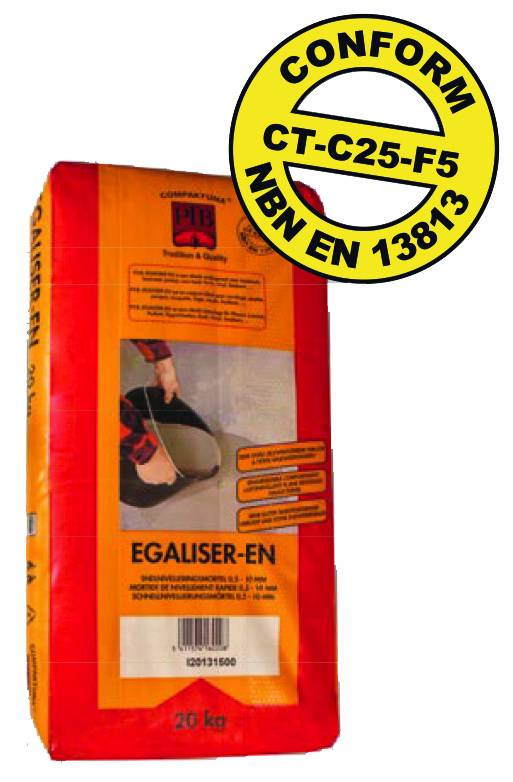 Le mortier EGALISER-EN est constitué de ciment, de sables de quartz sélectionnés et d'additifs de haute qualité.