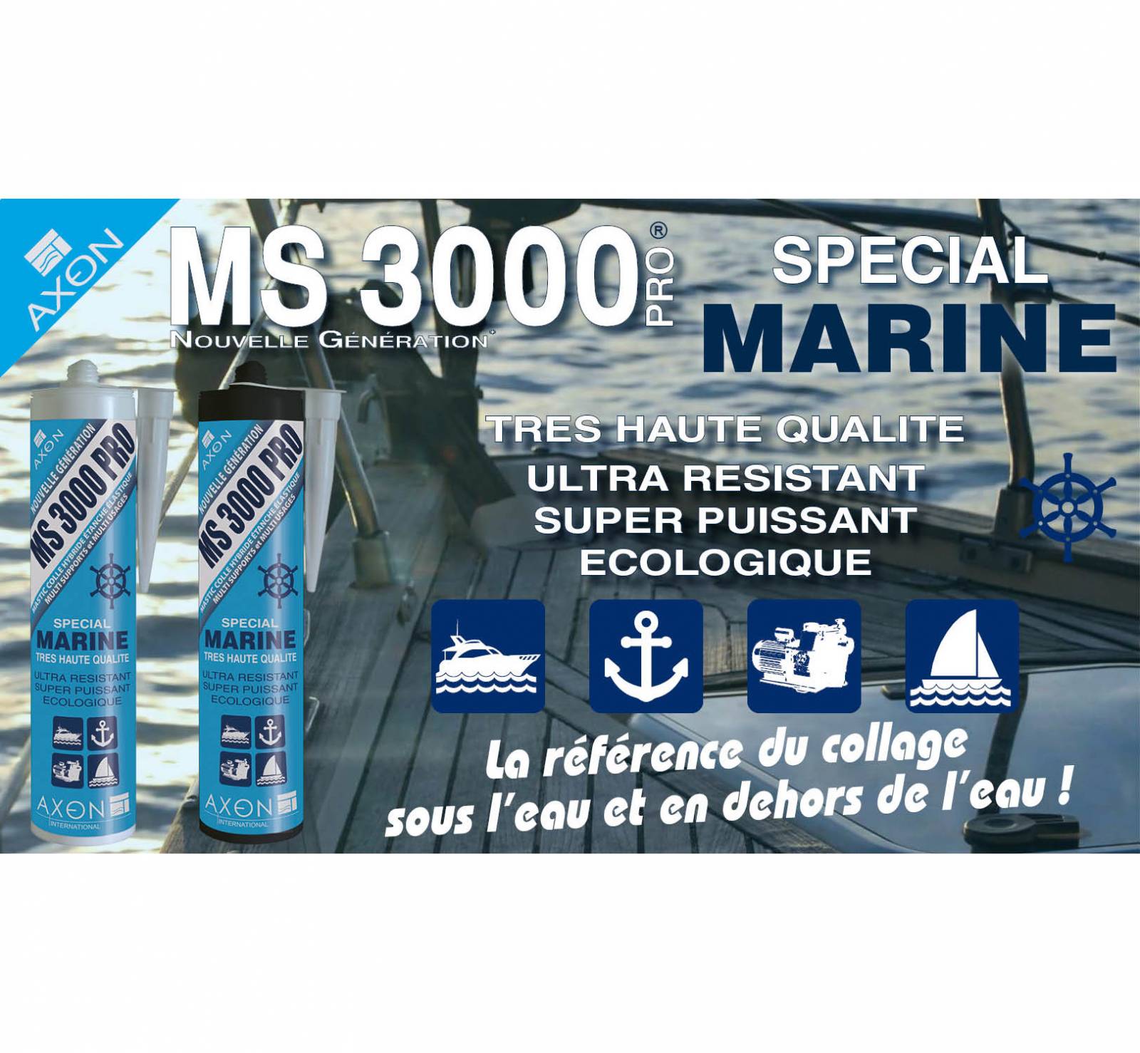 Mastic colle Universel et structural Nautisme, adhère sur la majorité des supports.