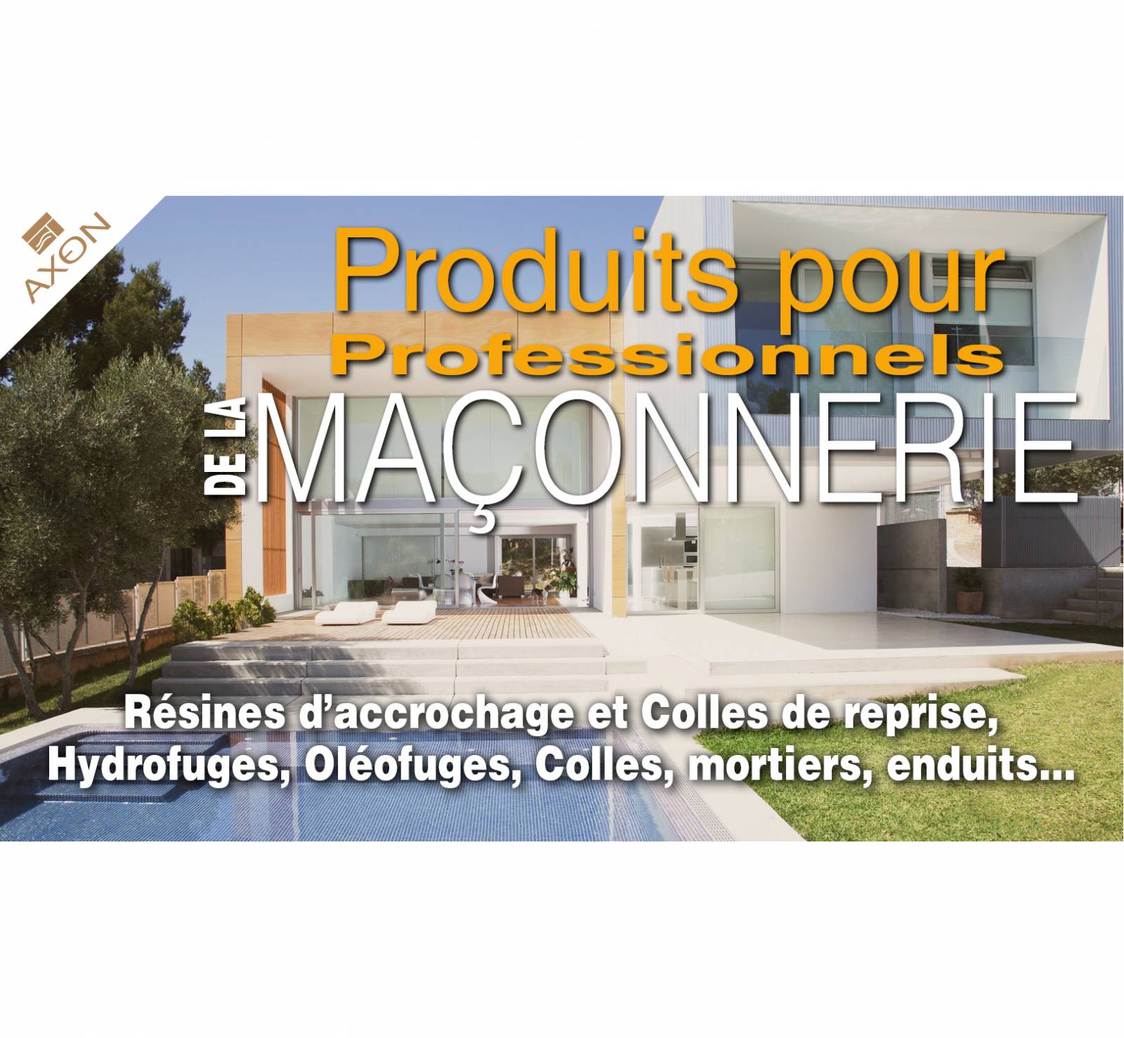 AXON International fabrique et commercialise de nombreux produits d'étanchéité, de collage pour le Bâtiment, plus particulièrement dans le domaine des résines d'accrochage et colles de reprise, Hydrofuges de masse, Hydrofuges de surface, minéralisateurs, revêtement sous carrelage, produits de traitement, mortiers, chapes, ciments colles, enduits, barbotines, joints.